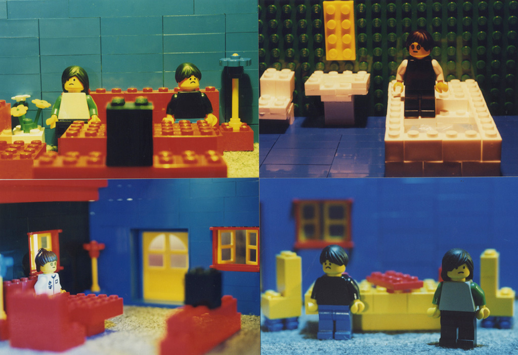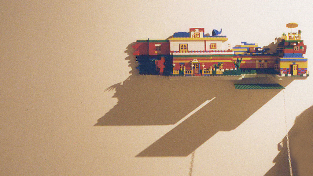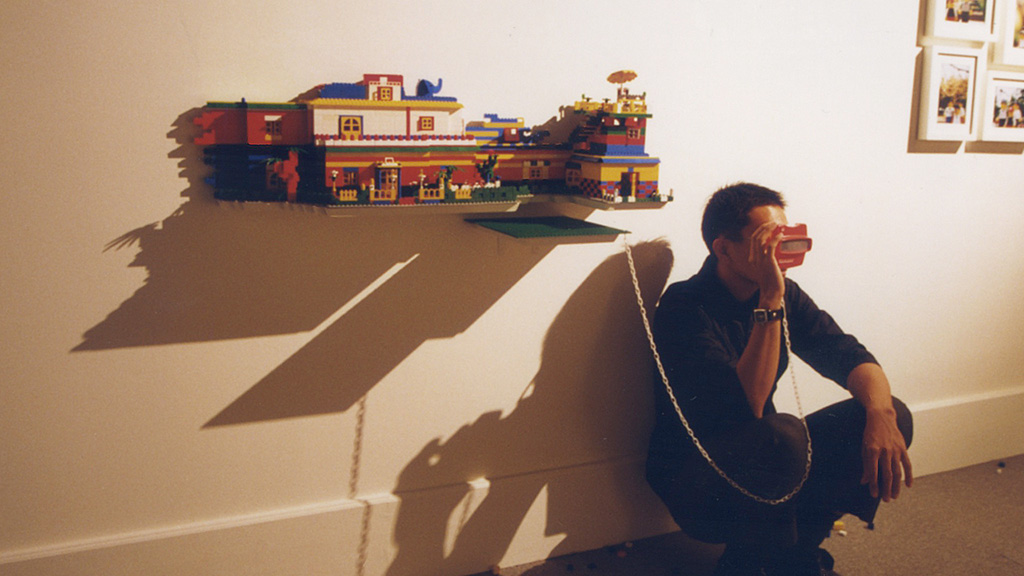 在記憶之屋內的作品,大多使用玩具為素材,像是樂高積木、立體視點的幻燈片玩具和一些現成物件。
