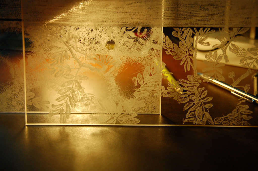 在這個充滿有機個性的Studio94空間, 我試著讓原本是主角的作品順應空間的特性,讓引入室內的光線和投射光線,形成自然交互的狀態,作品上所散發微弱光線,就像是安靜存在的美好一般,自在、優雅。